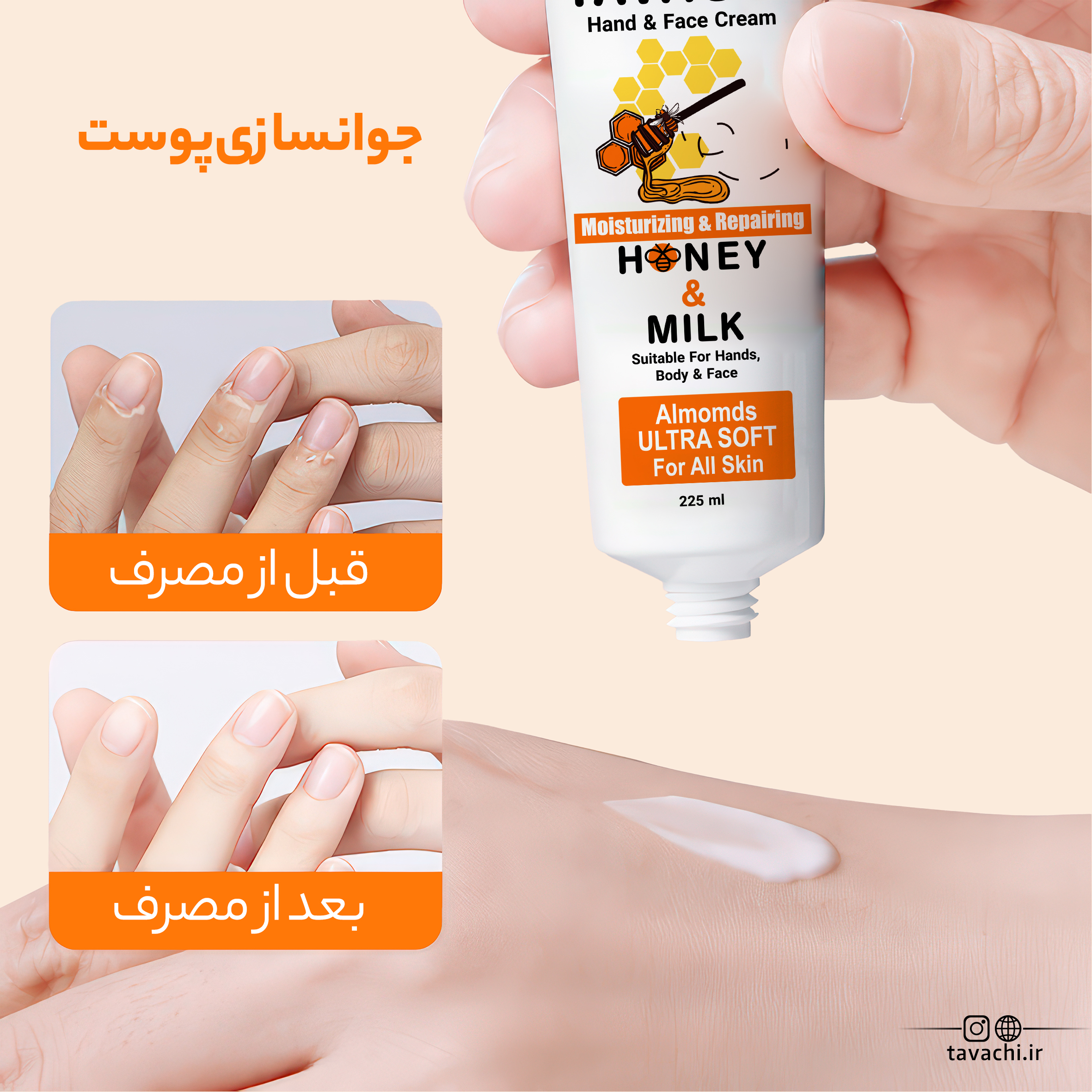 • حاوی ترکیبات شیر و عسل